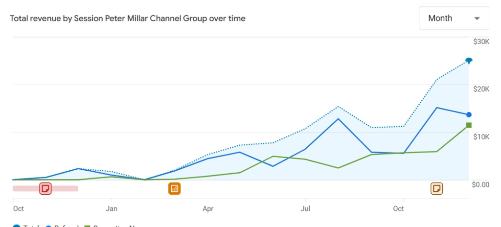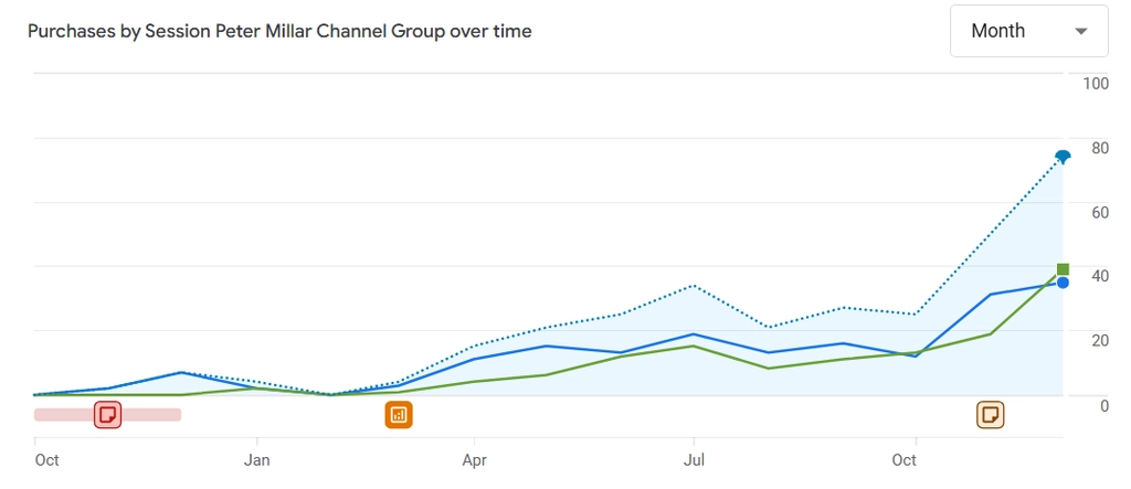 As Peter Millar appeared more consistently in product-focused AI responses, qualified sessions increased.