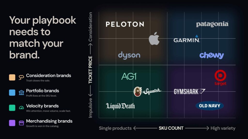 Below is a visual showing how we segment e-commerce brands so we can tailor each growth pillar to match customer behavior and profitability goals.