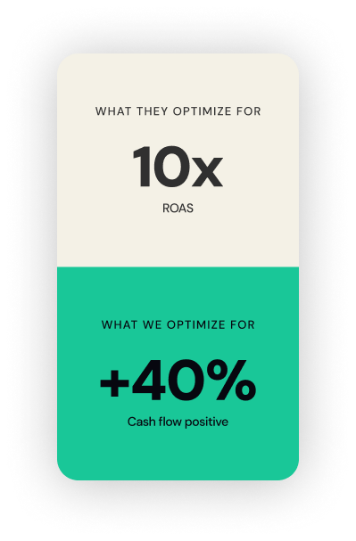 We optimize for MER, the only metric that actually pays payroll. Optimizing for ROAS isn't helpful if your business isn't profitable.